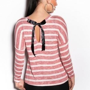 Koucla punavalkoinen raitaneule kurkistusaukolla