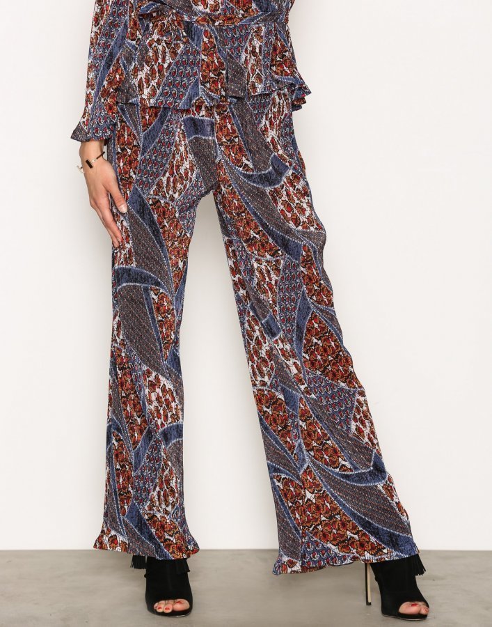 Aéryne pliseeratut housut. Väljä malli vyötäröresorilla. Levenevät lahkeet. Valmistettu 100 % Polyesterista. Tuotenumero: 750472-1204. Väri: Orient Touch. Kategoriaryhmä: Vaatteet / Housut & Shortsit / Housut. Koot: X-Small, Medium, Small, Large. Kohderyhmä: Naiset.