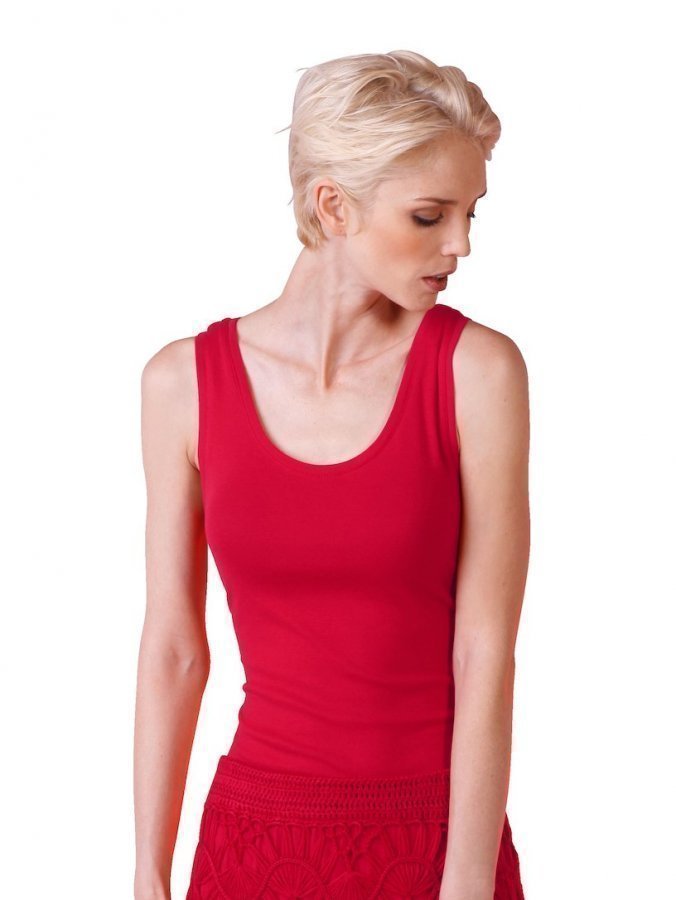 Pitkähelmainen toppi, jossa on leveät olkaimet. Helppo yhdistellä eri asuihin. Vartaloa korostava malli. Koon 38 pituus n. 74 cm.