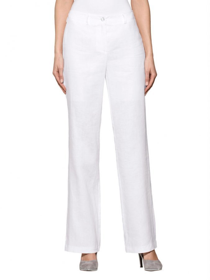 Kesäiset pellavahousut ovat pehmeää ja mukavaa materiaalia. Kevyesti levenevät lahkeet. Vartaloa korostava malli, jossa on normaali vyötärönkorkeus. Koon 38 lahkeen sisäpituus n. 84 cm. Lahkeen ympärys n. 51 cm.