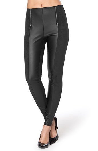 Leggingsien etuosassa on PU materiaalia ja mokkajäljitelmää. Takaosa vahvaa trikoota. Koristevetoketjut edessä. Vyötäröllä… Lue lisää »