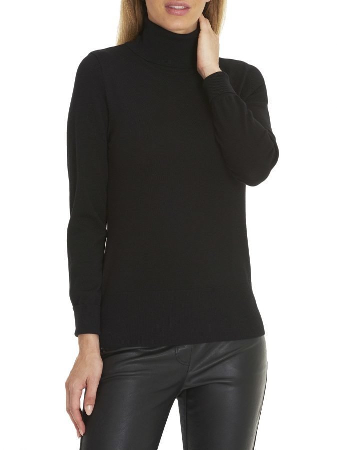 Naisten ohut neulepusero poolokauluksella. Helmassa ja hihasuissa leveät resorit. Koossa 36 pituus n.62 cm. Materiaali: 72% viskoosia, 28% polyamidia…. Lue lisää »