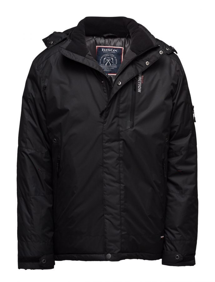 Bison Valmistusmateriaali: 100% Polyesteri Säänkestävä Neppari-ja vetoketjukiinnitys Pystysuorat vetoketjutaskut Täysvuorattu- ja topattu