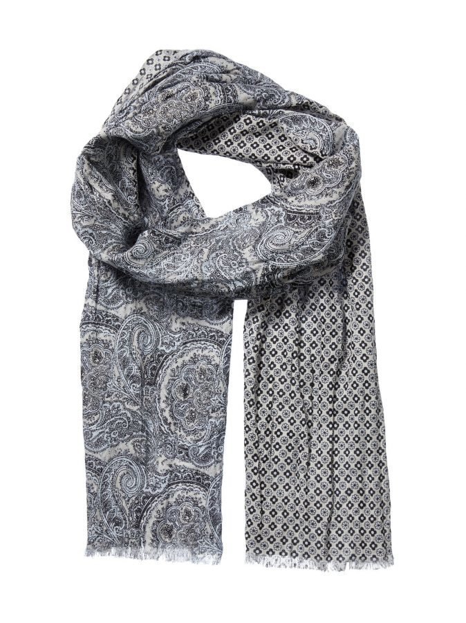 Mukavasta puuvillasta valmistetussa huivissa on näyttävä kuviointi, joka viimeistelee yksinkertaisen asukokonaisuuden tyylikkäästi.