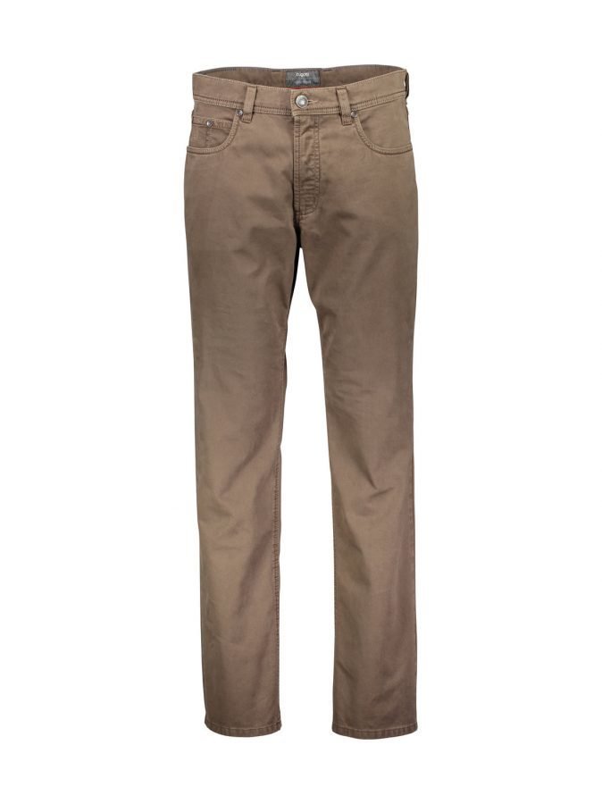 Regular fit -mallisissa housuissa on suorat lahkeet. Viisitaskuhousuissa on normaali vyötärö ja etuhalkiossa vetoketju ja nappi. Materiaali on 98 % puuvillaa ja 2 % elastaania. Konepesu 40 °C