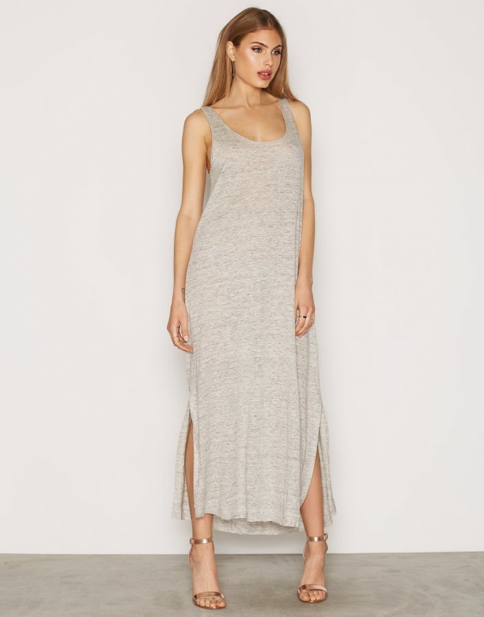 By Malene Birger maksimekko. Hihaton, väljä malli pyöreällä kaula-aukolla. Syvä aukko takana. Halkiot helman sivuissa. Valmistettu 100 % Pellavasta. Tuotenumero: 630646-7773. Väri: Light Grey Melange. Kategoriaryhmä: Vaatteet / Mekot / Maksimekot. Koot: X-Small, Medium, Large, Small. Kohderyhmä: Naiset.