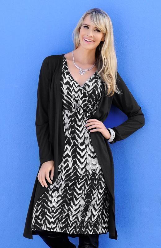Kuvioitu kietaisumekko, leikkaus poven alla. Kerroksittainen malli mukavaa trikoota. Kiinniommeltu rento neuletakki, avoin… Lue lisää »