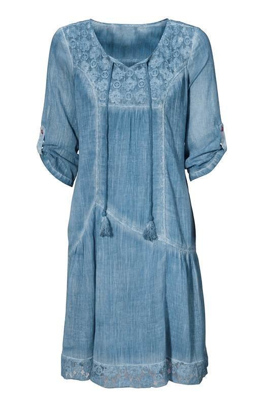Romanttinen mekko. Jokainen kappale on omalla tavalla pesty. Olkapäillä ja helmassa pitsiä. Pyöreä… Lue lisää »