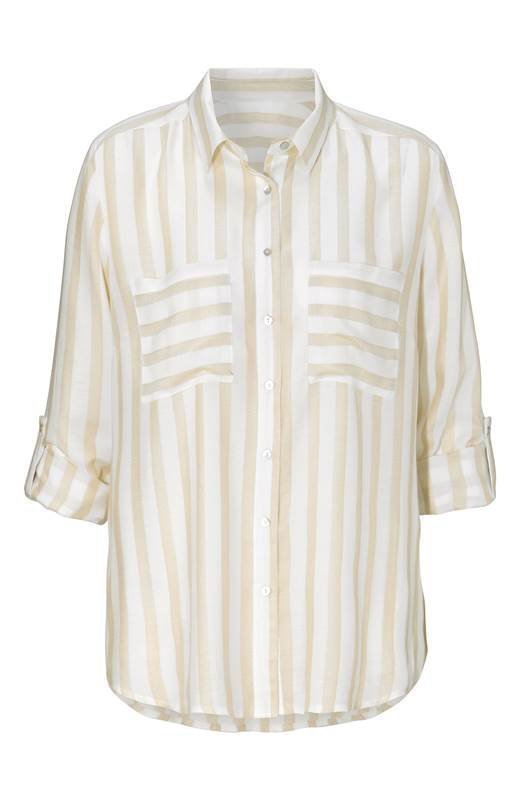 Raidallinen paita kudottua kangasta. Napitettava malli, jossa kaulus ja edessä helmiäisnapit. Rintataskut Takana… Lue lisää »