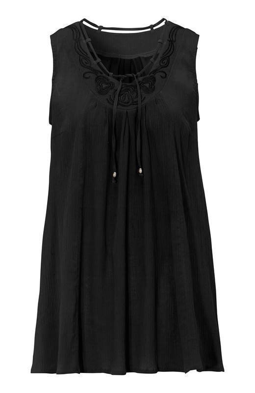 Ihana, väljä toppi, pehmeää kreppimateriaalia. Silmukoita solmimisnauhoilla pääntiessä, hopeahelmet nauhojen päissä. Pääntiessä osia… Lue lisää »