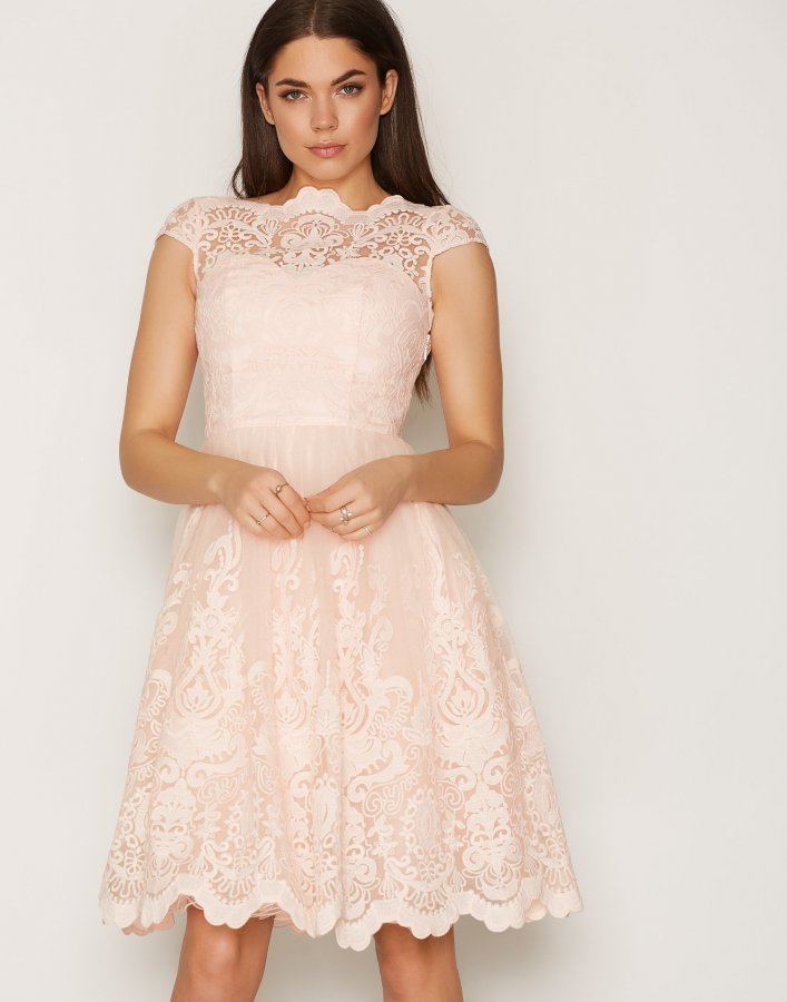 Chi Chi London -pitsimekko. Lyhythihainen malli, jossa topatut kupit ja joustamaton vyötärö. Levenevä hameosa. Piilovetoketju vasemmalla sivulla. Vuorattu. Valmistettu 100 % polyesterista. Malli: Malli on 173 cm pitkä ja käyttää kokoa EU 34. Tuotenumero: 620262-0427. Väri: Pink. Kategoriaryhmä: Vaatteet / Juhlamekot / Skater Dresses. Koot: EU 36, EU 38, EU 42, EU 34, EU 40. Kohderyhmä: Naiset.