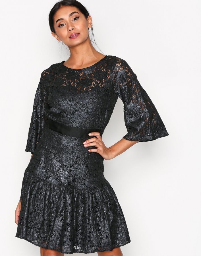 Closet mekko. Tehty crochet-materiaalista korostetulla satiini vyötäröllä ja solmittavill naruilla takaa. 3/4-hihat levenevillä hihansuilla. Hameosa röyhelöllä helmassa. Halkio napilla niskassa ja vetoketju takana. Alusmekko kapeilla olkaimilla. Valmistettu 50 % Puuvillasta, 48 % Polyamidista ja 2 % Elastaanista. Malli: Malli on 154 cm pitkä ja käyttää kokoa EU 34. Tuotenumero: 605317-3294. Väri: Dark Grey. Kategoriaryhmä: Vaatteet / Juhlamekot / Skater Dresses. Koot: EU 34, EU 36, EU 38, EU 40, EU 42. Kohderyhmä: Naiset.
