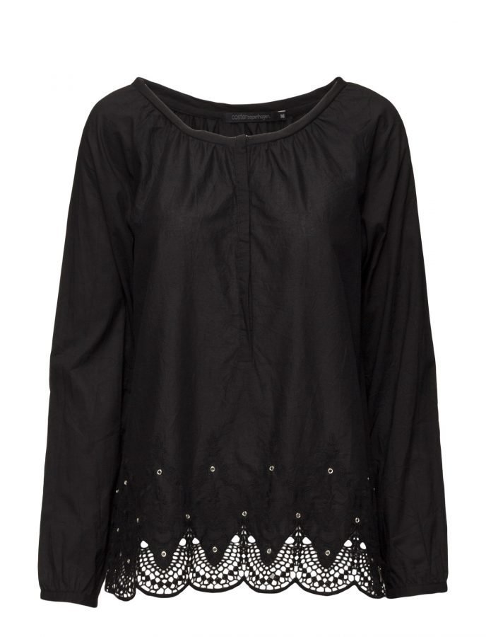 Coster Copenhagen Valmistusmateriaali: Puuvilla 100% Piilotettu kiinnitys Piparireunainen helma Virkattu pitsireunus Napilliset kalvosimet Boheeminen