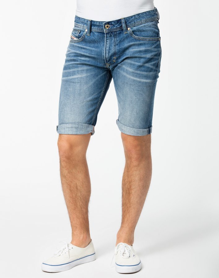DIESEL farkkushortsit. Sepalus vetoketjulla ja napilla. Viisi vyönlenkkiä. Kolme taskua edessä, joista yksi kolikkotasku sekä kaksi takataskua. Taitetut lahkeensuut ja koristekulutuksia. Valmistettu 98% puuvillasta ja 2% elastaanista. Lataa lehdistökuva Tuotenro: 219258-0033