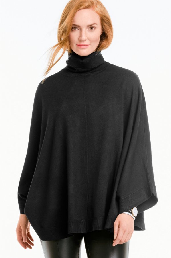 Ihana neuleponcho, jossa poolokaulus. Väljä malli. Pituus n. 71 cm koossa 38/40. 80% viskoosia, 20% polyamidia Istuvuus: relaxed Ohutta neuletta Hienopesu 30°.