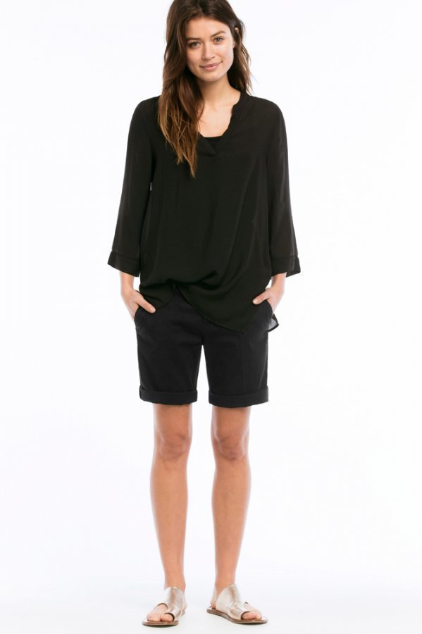 Shortsit stretchtvilliä. Pitkät lahkeet, normaalikorkuinen vyötärö ja normaali istuvuus. Matalahko haara. Lahkeet näyttävät hyvältä ylös käännettyinä! Lahkeen sisäpituus n. 28 cm ja lahkeensuu n. 48 cm koossa 38. 97% puuvillaa, 3% elastaania Istuvuus: regular Pesu 40°.