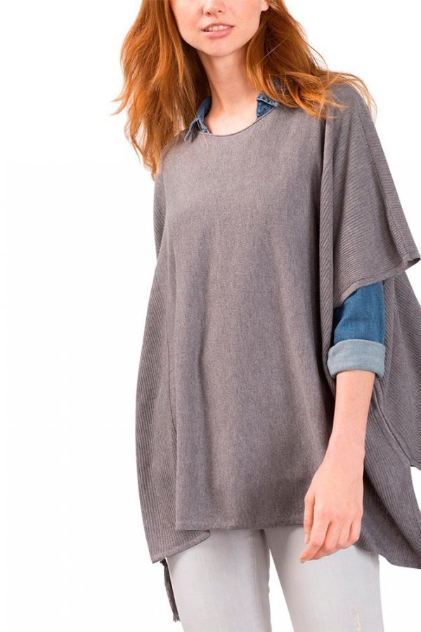 Esprit-poncho neuletta. Sileää neuletta edessä ja takana, raitaneuletta sivuilla. Pyöreä pääntie, jossa pieni rullareuna. Kapeavakoinen reuna sivuilla ja helmassa. Pyöristetty helma, jossa halkio ja tupsut sivuilla. Pituus n. 65 cm koossa M. 65% polyesteriä, 35% viskoosia Istuvuus: relaxed Hienopesu 30°.