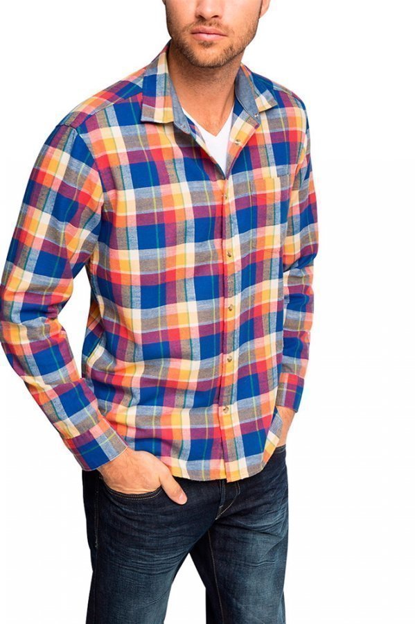 Esprit-flanellipaita pehmeää, ruutukuosista flanellia. Suora malli. Pieni kaulus ja helmiäishohtoiset painonapit. Päälleommeltu rintatasku. Kalvosin hihansuissa. Pyöristetty helma. Pituus takaa n. 75 cm koossa L. 100% puuvillaa Istuvuus: regular Pesu 40°.