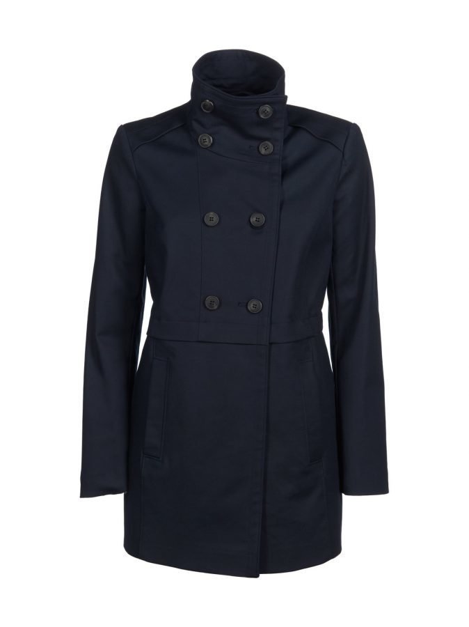 Lämpimästä ja pehmeästä puuvillasta valmistetun takin materiaalissa on mukana hieman joustoa tuovaa elastaania. Kaksirivinapitetussa takissa on edessä pystytaskut. Hihansuissa on nappilistat, takana on keskellä halkio. Kauluksen saa tarvittaessa napitettua kiinni ylös asti.