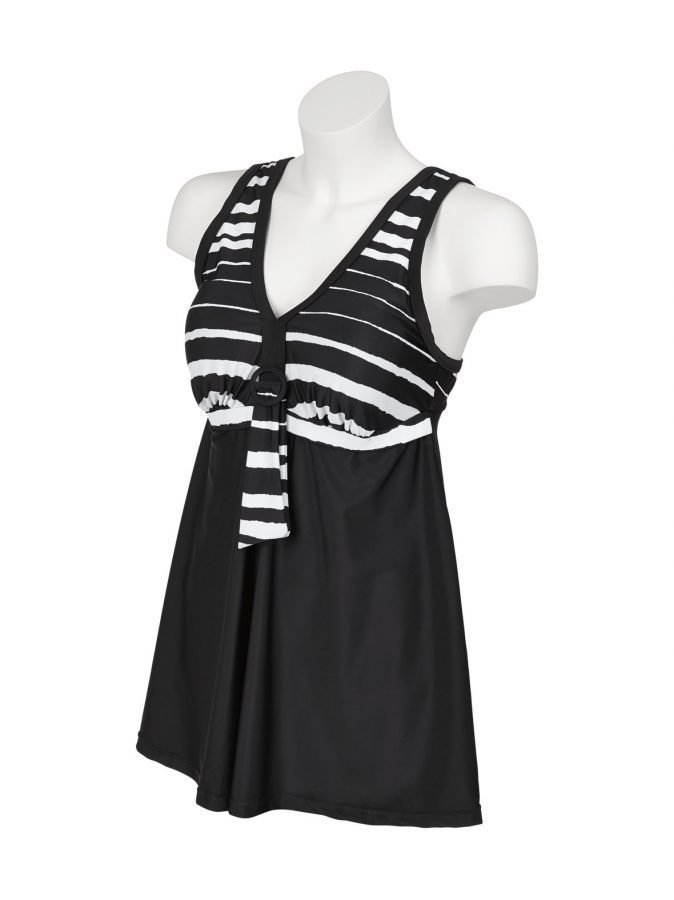 Uimapuvussa on kevyesti vahvistetut kupit ja peittävä päälliosa. Sisäosa on osittain verkkokangasta. Materiaali on 80 % polyamidia ja 20 % elastaania. Konepesu.