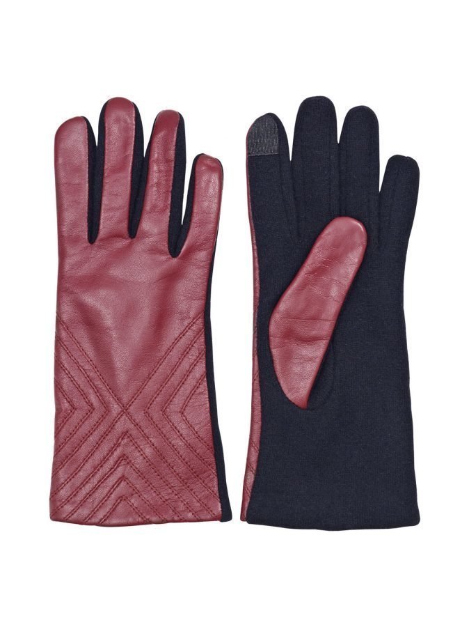 Koristekuvioiduissa käsineissä on nahkaiset kämmenselät. Kankaisella kämmenpuolella on etusormissa ja peukaloissa paikat älylaitteiden käyttöön.Päällinen on 100 % nahkaa, kangas on 80 % villaa ja 20 % nailonia. Vesipesu ja kemiallinen pesu ovat kiellettyjä.