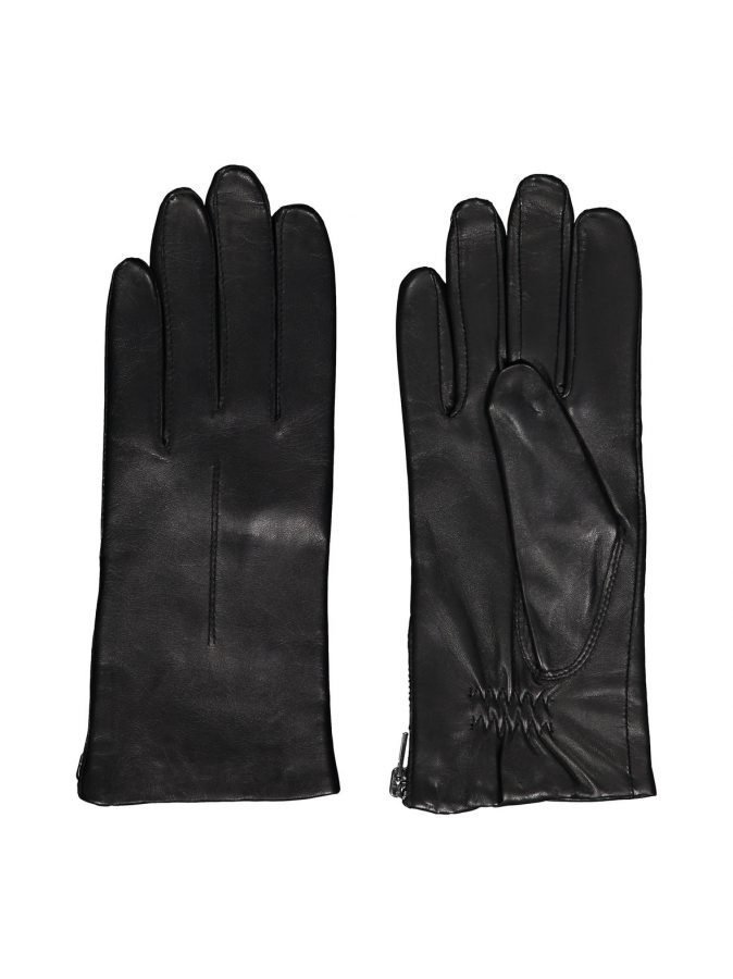 Napakoissa nahkakäsineissä on koristetikkausta kämmenselässä ja näyttävät vetoketjut ranteessa. Vuori on lämmintä ja pehmeää villan ja kashmirvillan sekoitetta.