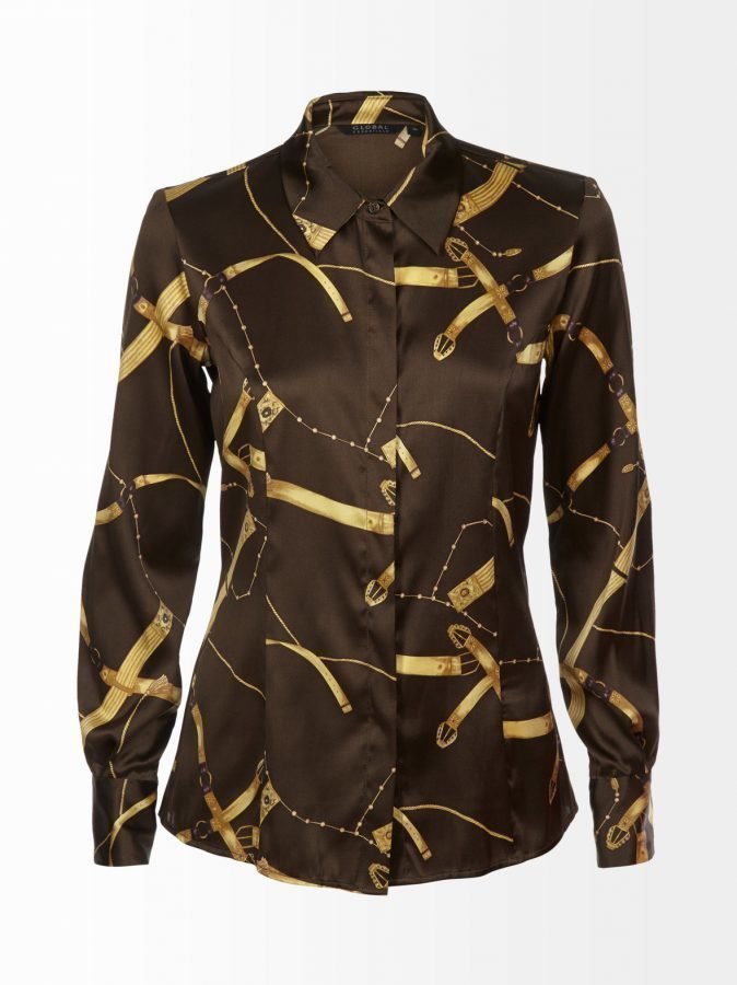 Satiinipuserossa on piilonapitus ja näyttävä kuviointi. Hihansuissa on napilliset halkiot. Hohtavapintainen materiaali on 95 % silkkiä ja 5 % elastaania. Käsinpesu.