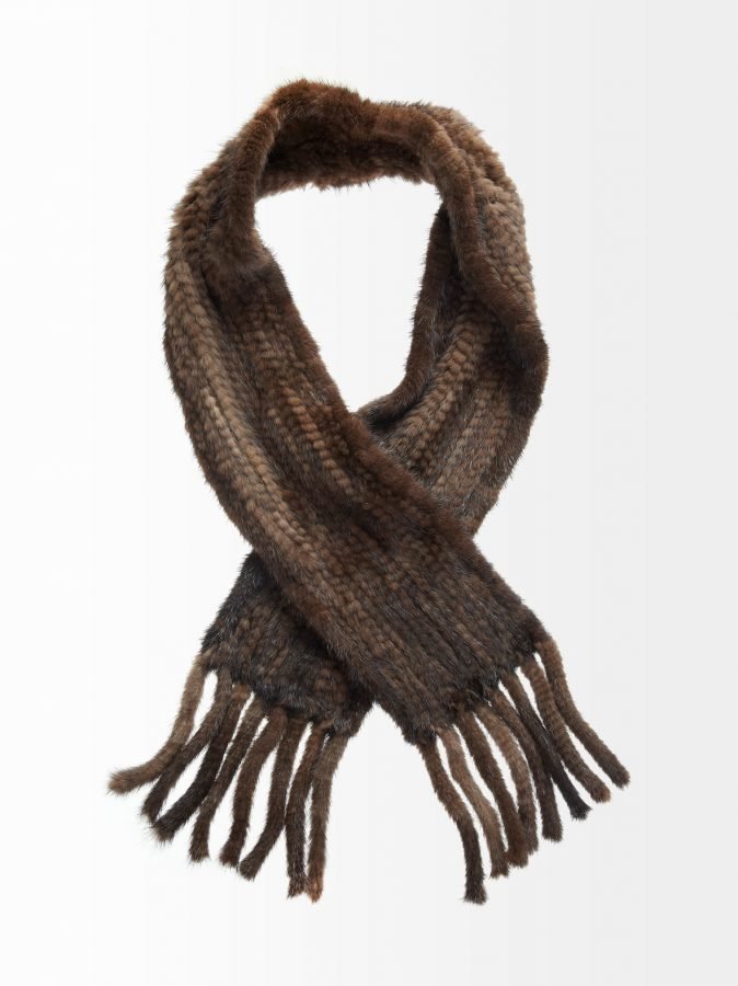 Ylellisen pehmeän huivin turkis on kiinni neuloksessa ja päissä on hapsut. Materiaali on minkkiä. Kemiallinen pesu.