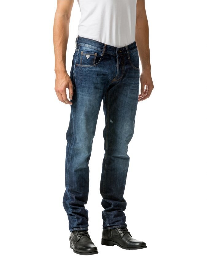 Slim Straight -mallisissa viisitaskufarkuissa on kulutuspesu ja näyttäviä kulutusefektejä, jotka antavat farkuille rennon ilmeen. Slim Straight –mallissa on hieman madallettu vyötärö ja kauttaaltaan kapeat lahkeet. Takataskussa ja sepaluksessa on koristetikkauksia ja kolikkotaskussa pieni logolappu. Etuhalkiossa on nappikiinnitys ja nappisepalus. Materiaali on 100 % puuvillaa. Konepesu 30 °C.