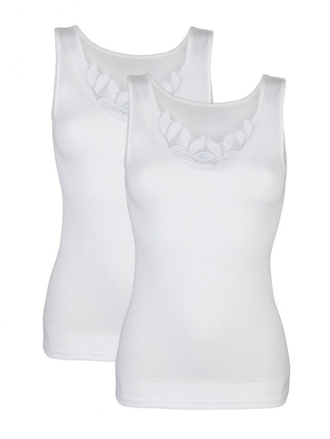 Koristeellisella kirjailulla somistettu aluspaita, kätevä tuplapakkaus. Muodikas kuosi, paita on valmistettu sileästä neuloksesta. Puhdasta puuvillaa. Helma on leikattu takaa etuosaa pidemmäksi.