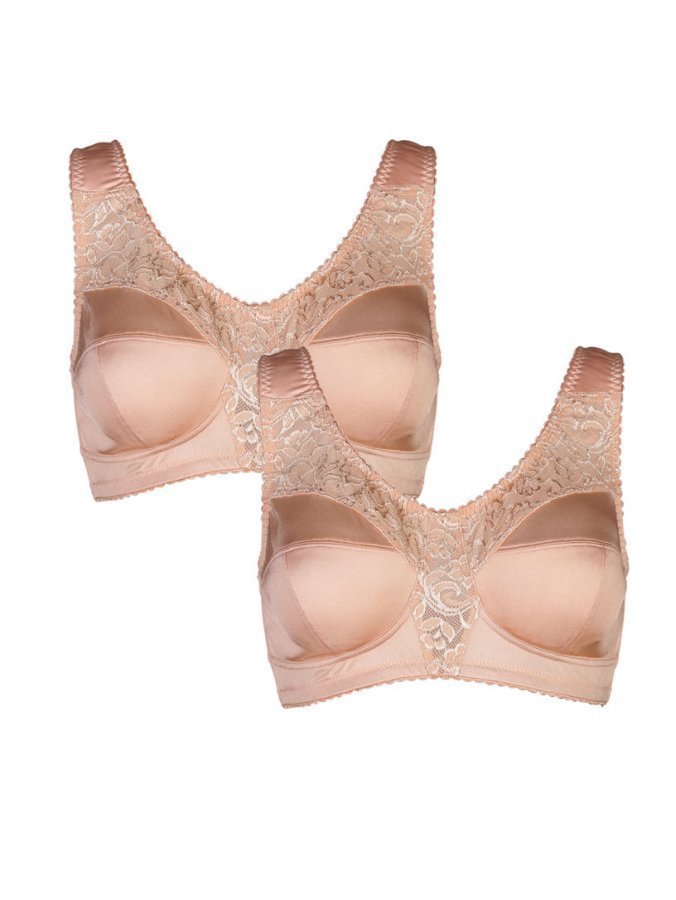 Harmony-rintaliivit, 2/pakkaus. Leveät tukiolkaimet estävät kivuliaiden painaumien syntymisen olkapäille. Olkainten pituutta ei voi säätää. 3-osaiset kupit, joissa on joustavaa pitsi ja sivutuet, takaavat täydellisen istuvuuden myös suurissa ko’oissa. Takana 3-portainen hakaskiinnitys.