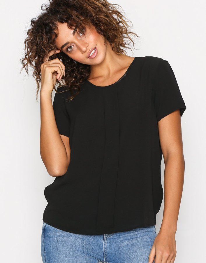 Jacqueline De Yong lyhythihainen pusero. Pyöreä kaula-aukko. Koristeellinen sauma edessä. Kiinnitys niskassa. Valmistettu 100 % Polyesterista. Tuotenumero: 64003-0014. Väri: Musta. Kategoriaryhmä: Vaatteet / Paitapuserot & Kauluspaidat / Arkipaidat. Koot: EU 34, EU 36, EU 38, EU 40. Kohderyhmä: Naiset.