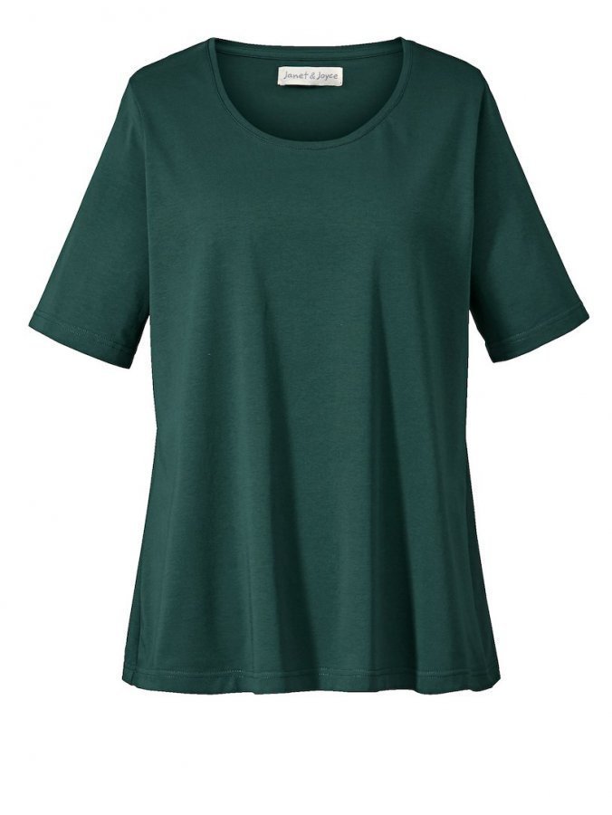Helposti yhdisteltävä peruspaita, jossa vartalolle edullinen malli. Lyhyet hihat ja pyöreän pääntien alapuolella rypytys.
