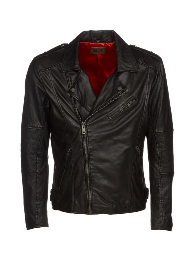 Miellyttävän pehmeästä nahasta valmistetussa Jofama Cliff -takissa on tyylikkäästi sivuun sijoitettu vetoketju ja kolme vetoketjullista etutaskua. Hihansuissa on vetoketjulliset piilohalkiot ja sisäpuolella sileä vuorikangas sekä kolme povitaskua.