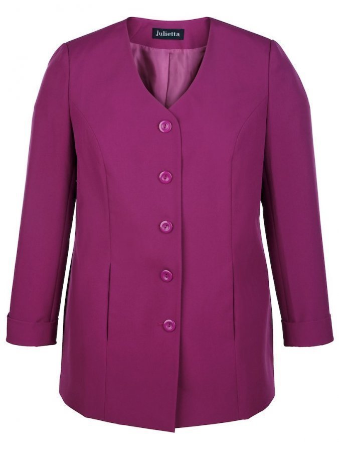 Viehättävä jakku monenlaiseen tilanteeseen. Klassinen, kaulukseton malli, jossa kauniit napit ja sivutaskut. Pitkissä hihoissa halkio. Täydellinen yhdistelmä tyylikäiden housujen tai hameen kanssa.