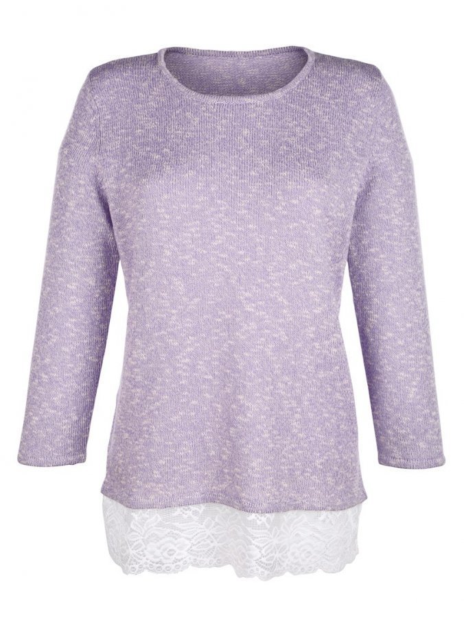 Kaunis meleerattu neulepusero, jossa on 3/4-hihat. Helmassa kaunis pitsireunus.