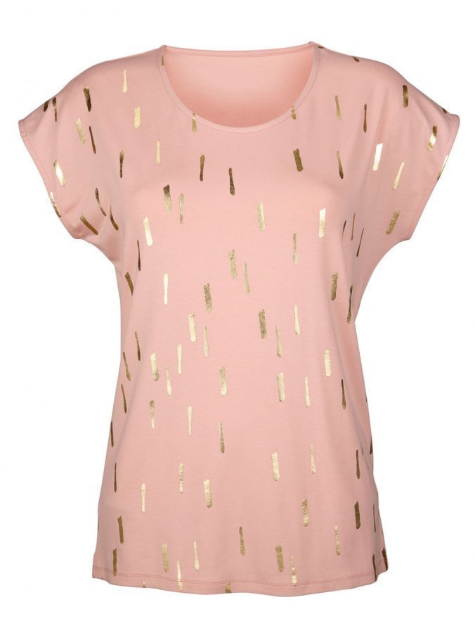 Paidan etuosassa on näyttävä foliopainatus. Muodikas, vartaloa korostava malli ja lyhyet holkkihihat. Miellyttävän joustavaa materiaalia.