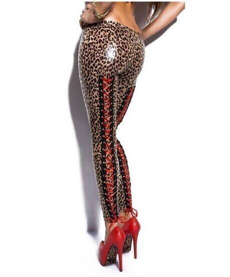 Leopard Faux Leather Wetlook Leggings Tights with red lace bands… Lue lisää »