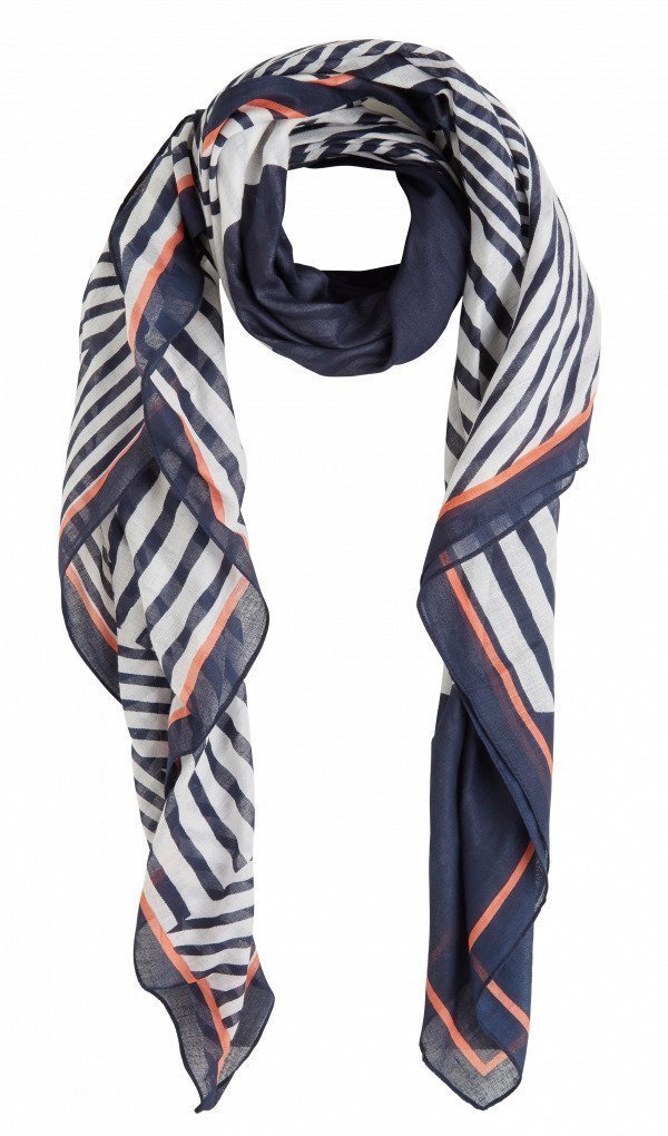 Suuri ja kevyt aistikas huivi, jossa on värikäs kuvio.