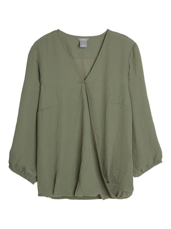 Kauniisti laskostettu pusero, jossa on päällekkäin menevä etuosa. Valittavana useita eri tyylejä.