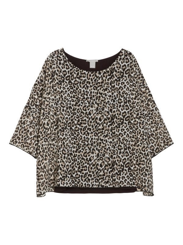 Löysä läpikuultava pusero, jossa on tyylikäs leopardikuvio ja pehmeä trikootoppi alla. Se sopii juhliin, töihin ja arkeen farkkuihin tai mustiin housuihin yhdistettynä.