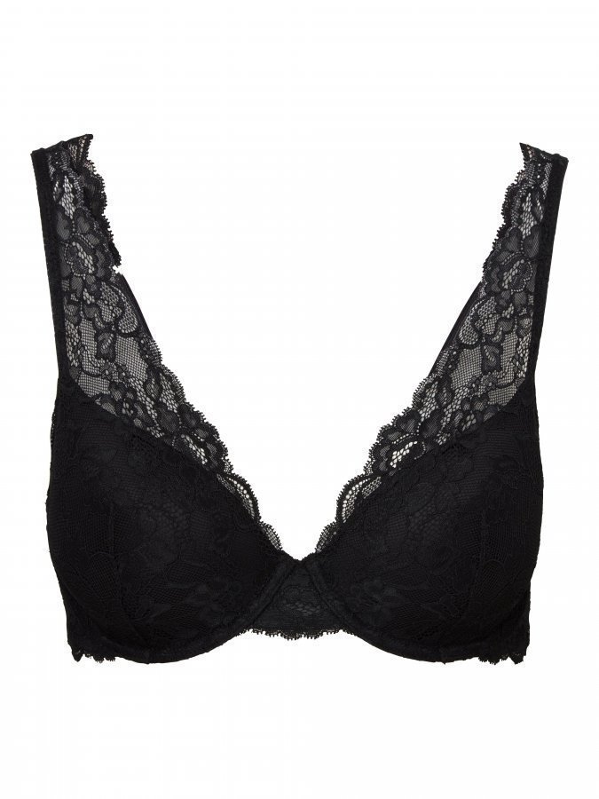 Kauniit rintaliivit, joissa on imarteleva v-pääntie ja runsasta pitsiä. Puolipeittävät kupit, joissa on pehmeä toppaus, antavat hyvän tuen päivän aikana.