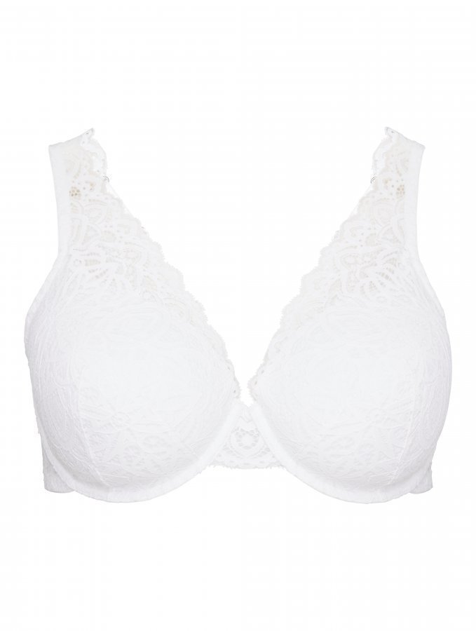 Kauniit rintaliivit, joissa on runsasta pitsiä ja imarteleva, syvä v-pääntie. Puolipeittävät kupit, joissa on pehmeä toppaus, antavat hyvän tuen päivän aikana.