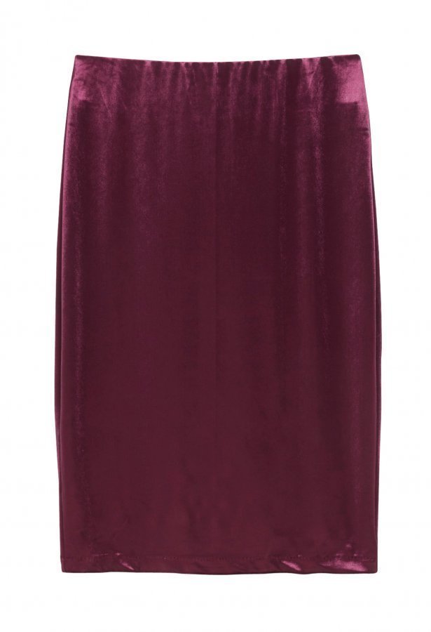 Sileä samettihame, jossa on kimaltava pinta ja joka on tyylikäs valinta iltalookiin. Yhdistä samanlaisen samettipuseron kanssa.