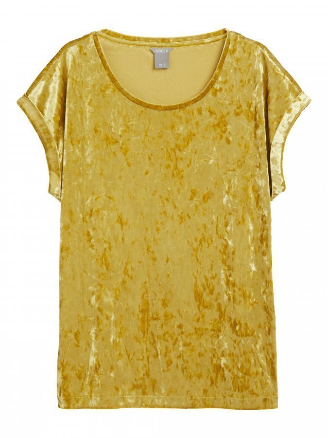 Tämä samettipusero lisää tyyliisi glamouria. Sen juju on lyhyet, käärityt hihat ja väljä malli.