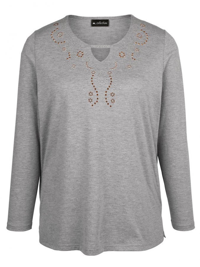 Tässä trendikkäässä paidassa käännät ihailevia katseita puoleesi. Muodikkaana katseenvangitsijana toimii pääntie, jossa on pieni, koristeellinen V-halkio sekä kimaltelevia koristekiviä. Helman sivuhalkiot tarjoavat mukavasti liikkumavaraa.