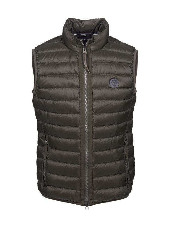 Kevyesti topattu untuvaliivi on vaakatikattu. Miehustassa on logosomiste ja edessä on vetoketjulliset taskut. Sisäpuolella on kiiltäväpintainen vuori ja vetoketjullinen tasku. Liivi suljetaan edestä kaksisuuntaisella vetoketjulla.