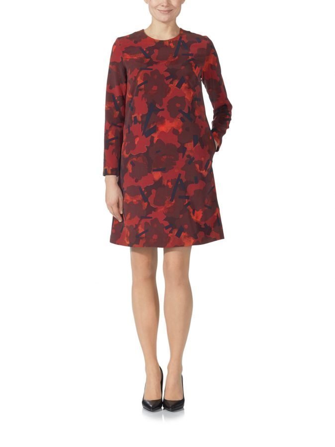 Tasha-mekon pelkistetty leikkaus antaa upealle kukkakuosille tilaa loistaa. Väljässä mekossa on pitkät hihat ja selässä piilovetoketju. Sivuilla on avotaskut. Materiaali on silkkiä, jonka seassa on hieman joustavuutta tuovaa elastaania.