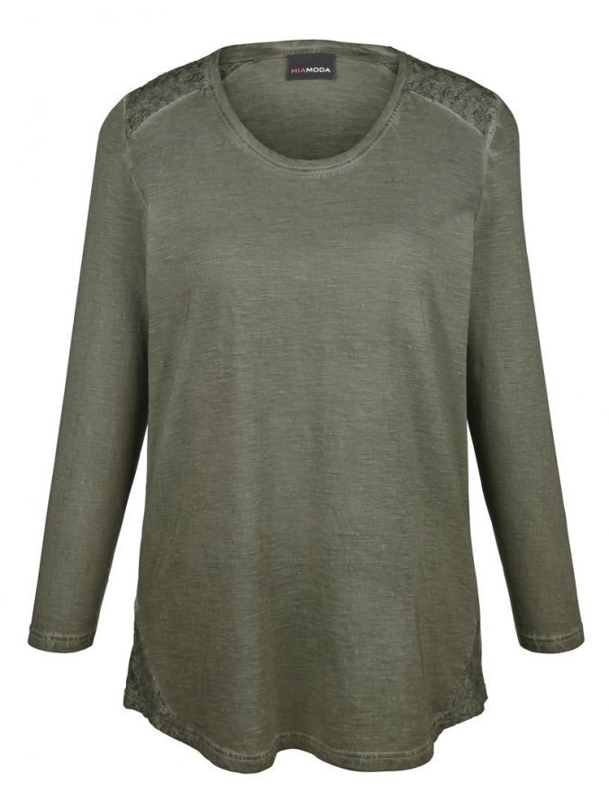 Muodikkaalla oil wash -pesulla käsitelty trendikäs paita. Hartioiden ja helman kevyesti läpikuultavat pitsisomisteet antavat naisellisen säväyksen ja tekevät mallista täydellisen! Plussana puhdas ja ihoa hellivä puuvilla, joka tarjoaa taatusti täydellisen käyttömukavuuden.
