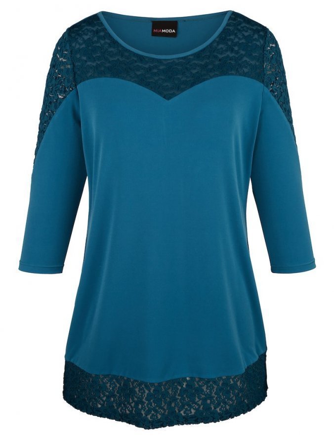 Pitkän mallinen yksivärinen paita. Pääntiessä, olkapäillä, 3/4-hihoissa ja helmassa tehosteena samansävyistä, kevyesti läpikuultavaa pitsiä. Erinomainen yhdistelmä esimerkiksi leggingsien kanssa.